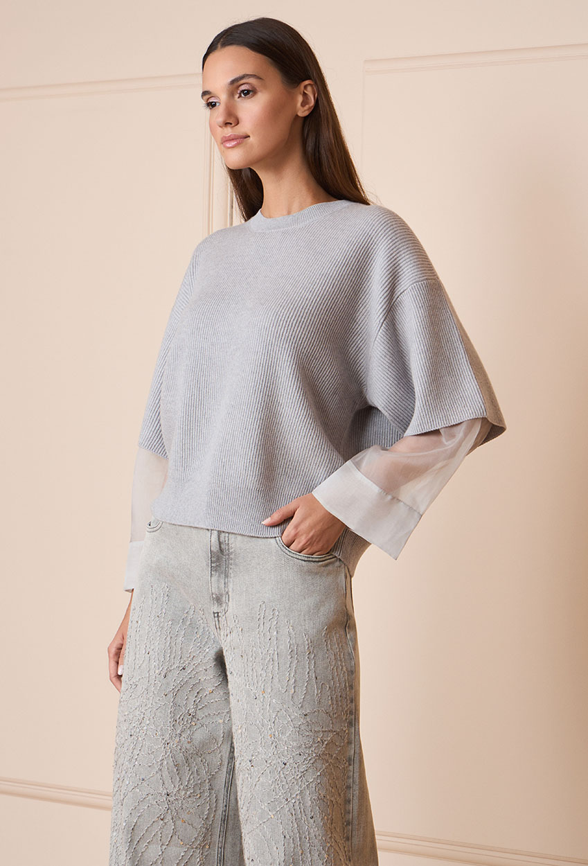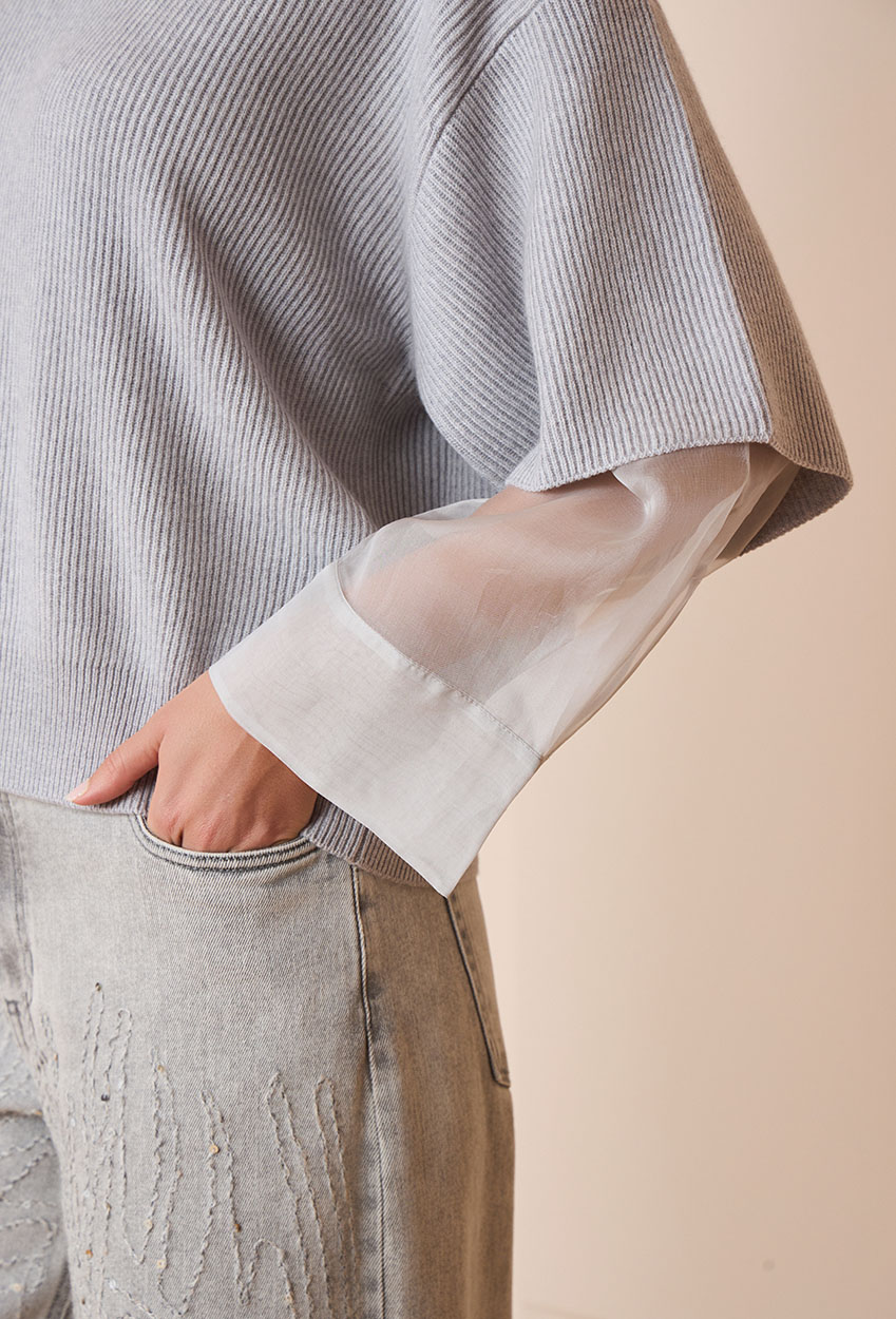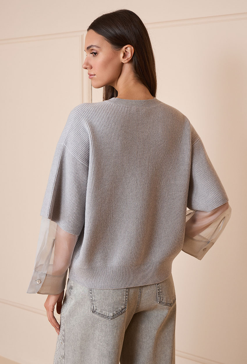 Light grey pullover with sheer sleeves